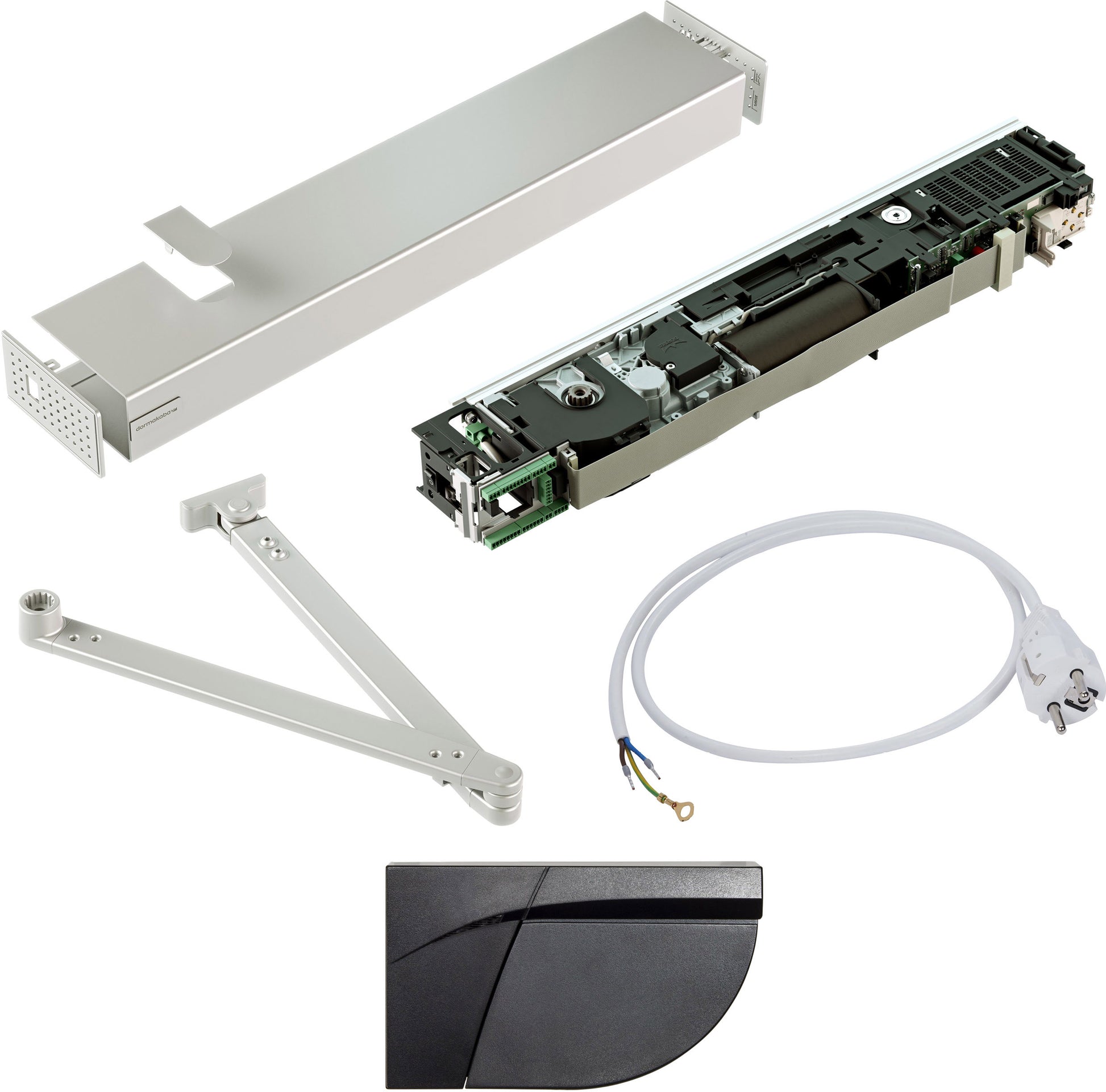 - Komplett dörrautomatik med täckkåpa, arm och montageplatta
